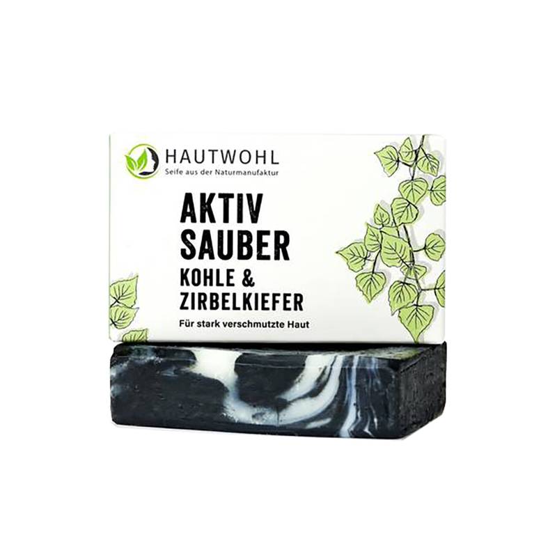 Seifenstück 'Aktiv Sauber' mit Kohle und Zirbe • antibakteriell und pflegend