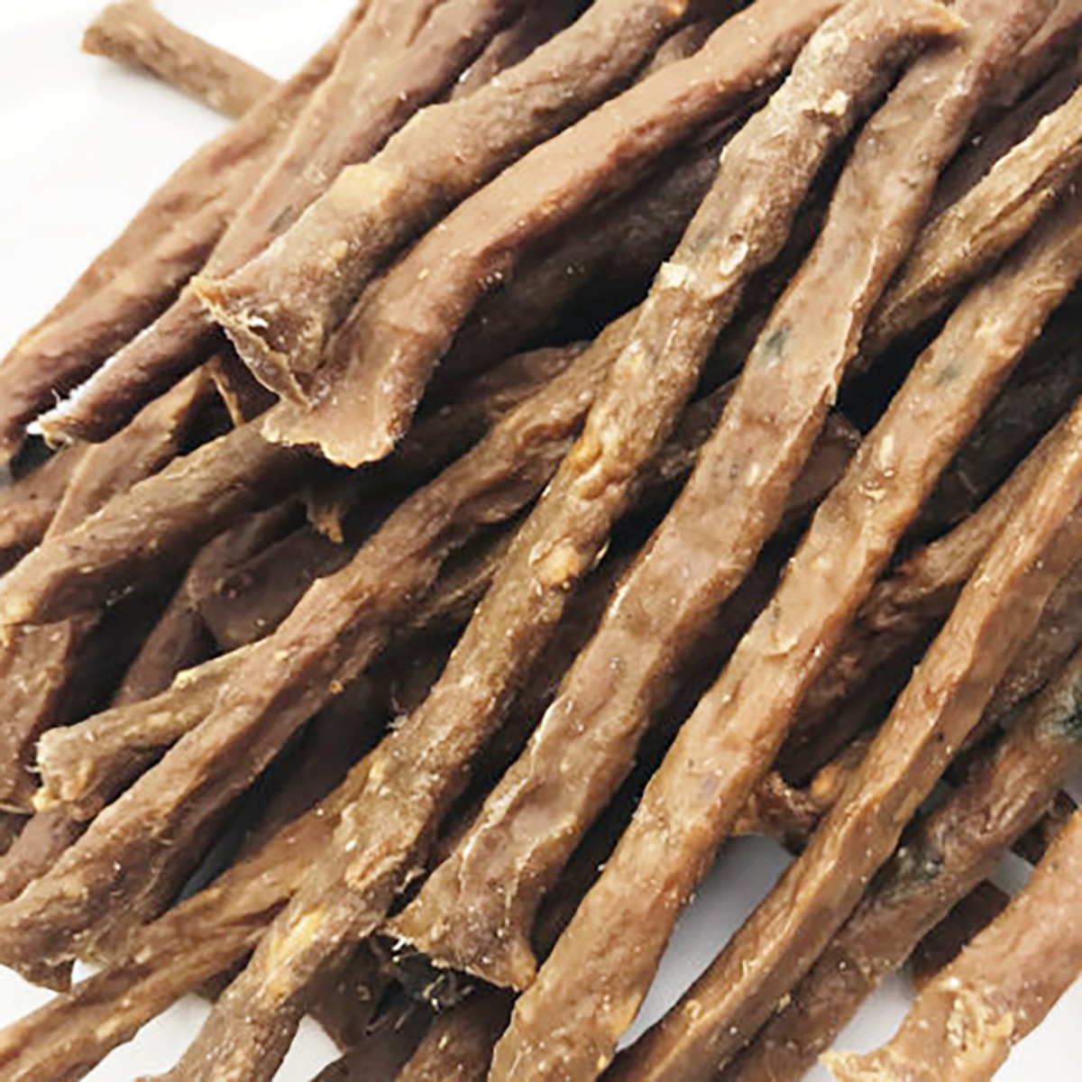 Unsere No. 7 Wiener bestehen aus 100 % getrocknetem Seebarsch, zu Kaurollen gedreht und gut für Zähne und Zahnfleisch.
