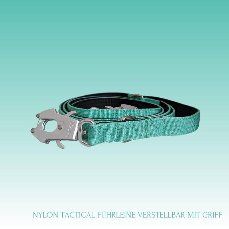 Mit unserer Tactical Führleine aus robustem Nylon hast Du jederzeit die volle Kontrolle: der Karabiner, ursprünglich aus dem Militärbereich, geht nur dann auf, wenn Du es willst – dann aber unbedingt. Auch einhändig unter Zug.