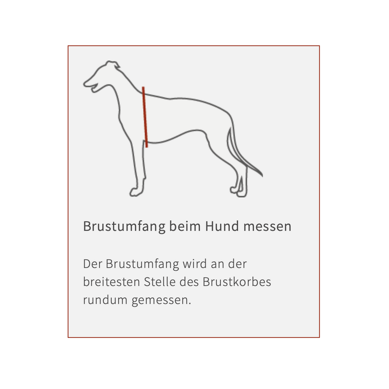 Einmal rundum an der breitesten Stelle des Brustkorbes. Beim Windspiel ist da ca. ein bis zwei Zentimeter hinter dem Vorderlauf, beim Barsoi kann das schon eine Handbreit sein.