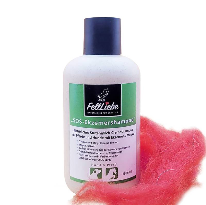 Die reichhaltige Shampoocreme von FellLiebe aus Norddeutschland löst Verkrustungen hautschonend bereits beim Waschen und enthält ätherische Öle, die schädliche Bakterien entfernen und ihr Wachstum unterbinden. Stutenmilch nährt die Haut und hilft, ihre natürliche Barriere wieder aufzubauen.