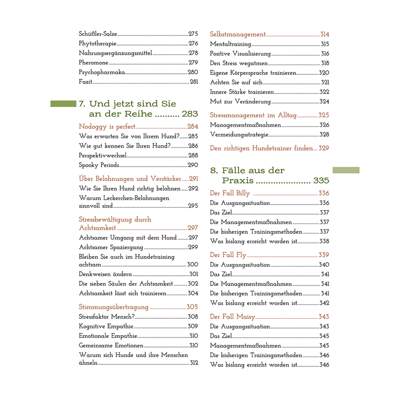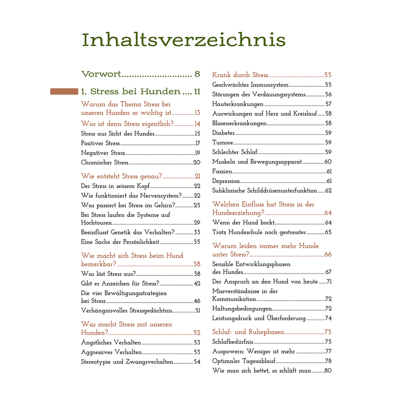 Zudem informiert das Buch über Stresssymptome beim Hund, auf welchen Grundpfeilern eine Hund-Mensch-Beziehung stehen sollte und wie Stress und Verhalten zusammenspielen.