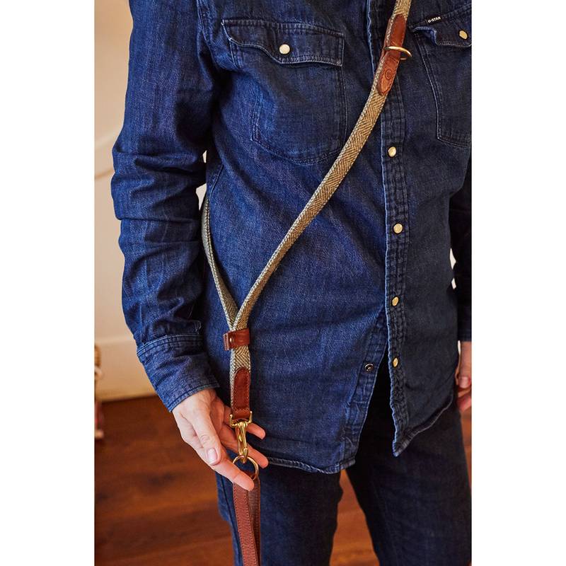 Diese Herringbone Tweed-Leine überzeugt durch hochwertige Materialien und fachmännische Verarbeitung: