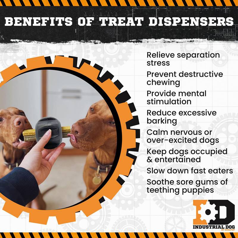 Für Hunde, die in bestimmten Situationen gestresst reagieren – beim Tierarzt, während einer Autofahrt, wenn Besuch kommt – sorgt ein Leckerlispender für Ablenkung und vielleicht, mit etwas Glück, sogar für positive Verknüpfung.