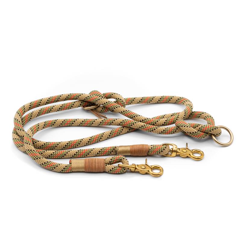 Die 2-fach verstellbare Leine "USCHI" bietet die Möglichkeit die Länge der Leine ganz individuell anzupassen. Beide Enden sind mit einem Karabiner versehen. Man kann die Ringe zum Einhaken der Karabiner jederzeit anhand der Knoten verschieben.
