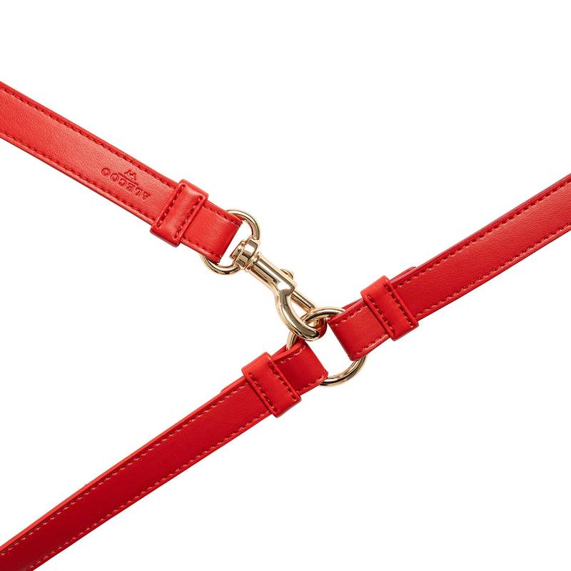Vegane Hundeleine aus Apfelleder, rot • Kombileine CLASSY SUNSET GOLD