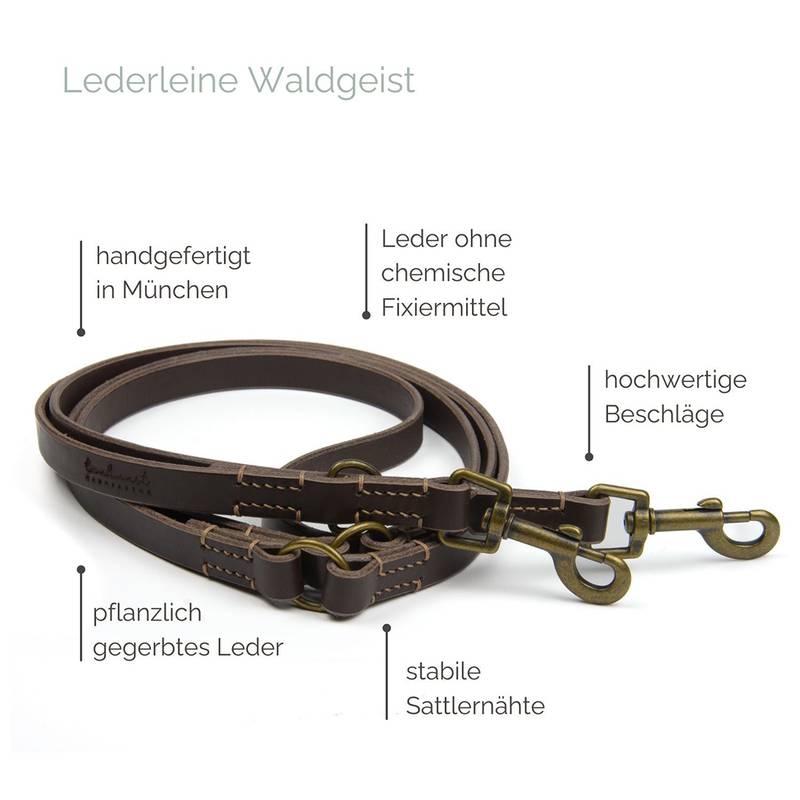 Waldgeist – eine meisterhaft gefertigte Leine für den Alltag, die Dich und Deinen Hund zuverlässig begleiten und Dir eine Freude bereiten wird, wie es nur "echte, gute Dinge" können.