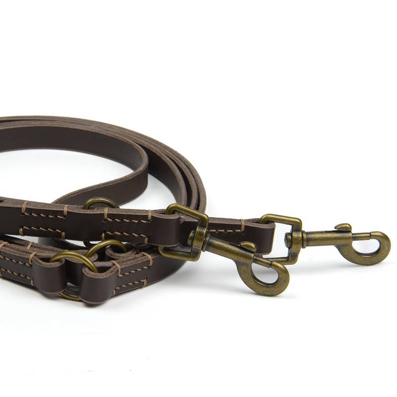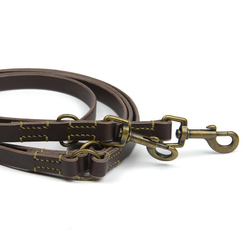 Verstellbare Hundeleine mit Sattlernaht • Leder dunkelbraun