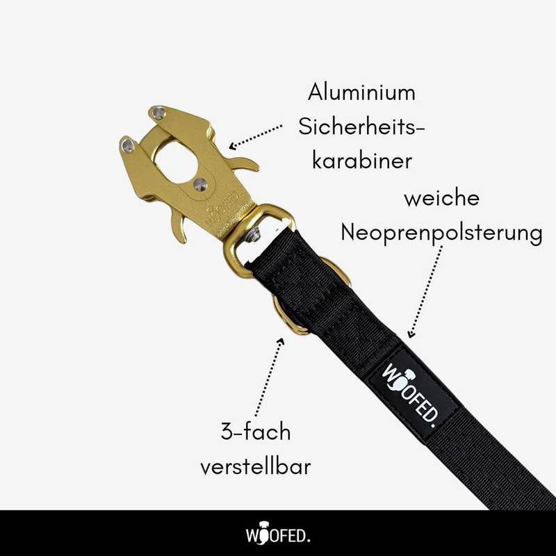 Verstellbare Sicherheits-Hundeleine mit Tactical Karabiner • schwarz | gold