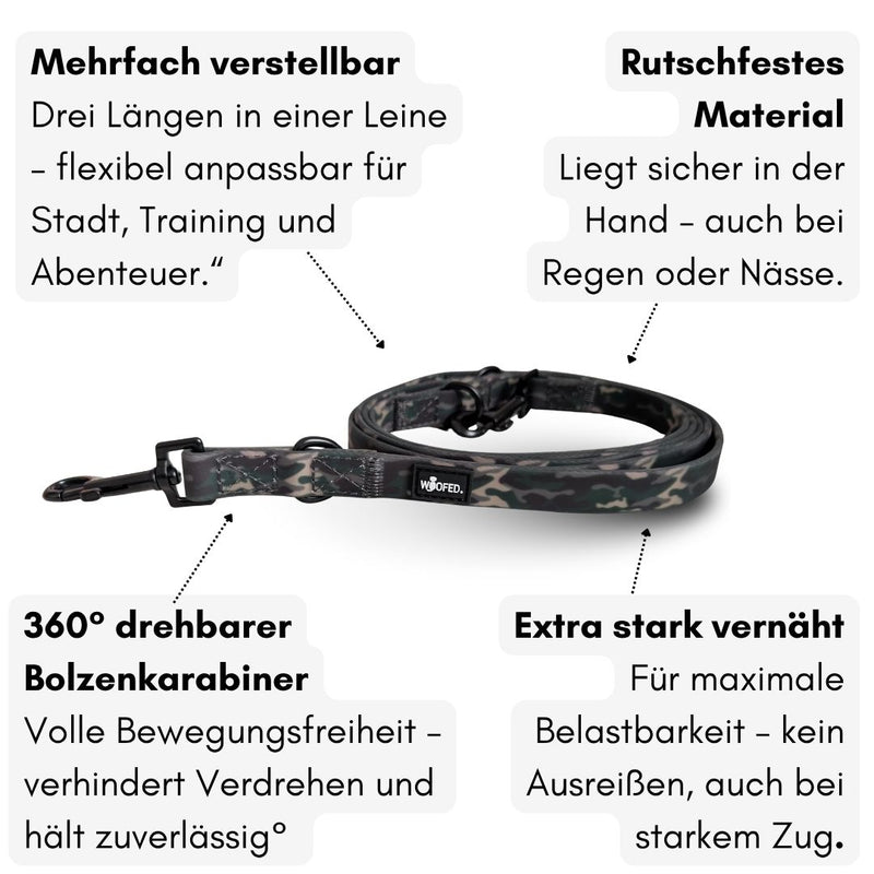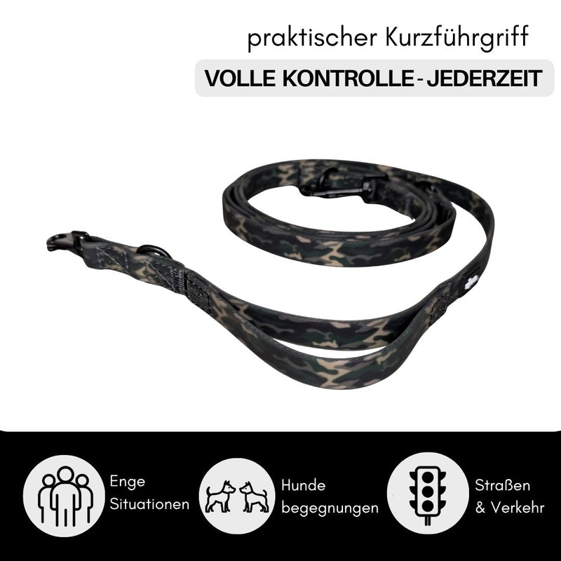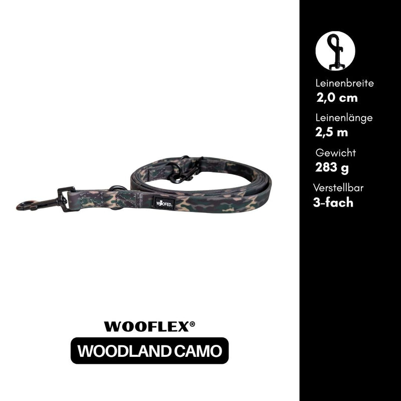 Wasserfeste Hundeleine, verstellbar • WOOFLEX® Classic Woodland Camo