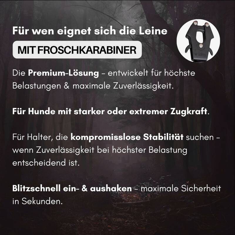 | Twist-Lock-Sicherheitskarabiner | starke Hunde (oder solche mit starkem Willen) Houdinis (auch mit ausgeprägtem Jagdtrieb, Angst/ Fluchtverhalten) | PRO |