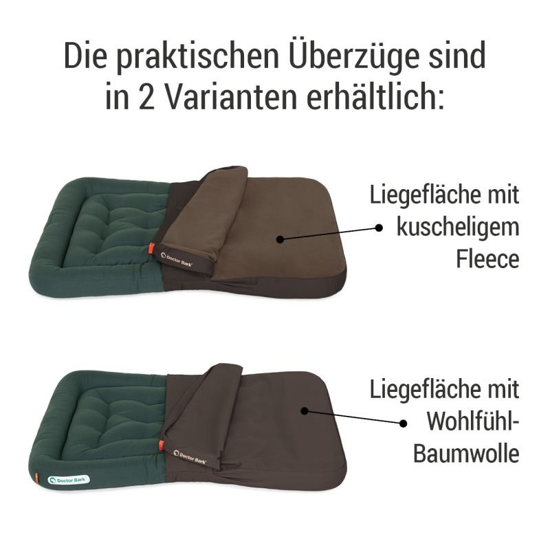 Das unkomplizierte Hygiene-Upgrade für das orthopädischen Hundekissen von Doctor Bark®: mit diesem schlauen Bezug wird der Schlafplatz Deines Hundes noch schneller wieder richtig sauber.