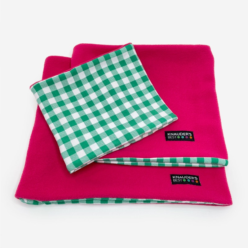 - eine Seite uni pink – eine Seite mit grünem Vichykaro.