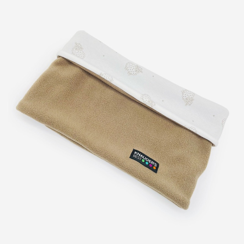 - eine Seite uni beige – eine Seite mit niedlichen Schäfchen auf weißem Grund