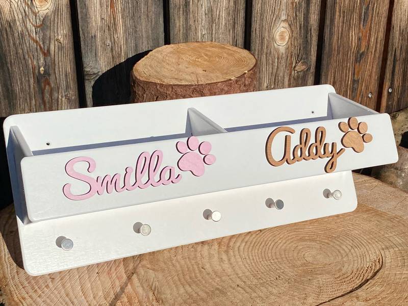Für diejenigen mit nur einem Hund – beziehungsweise einem mit überschaubarer Garderobe – gibt es auch eine kleinere Variante mit nur einem Fach und drei Haken.