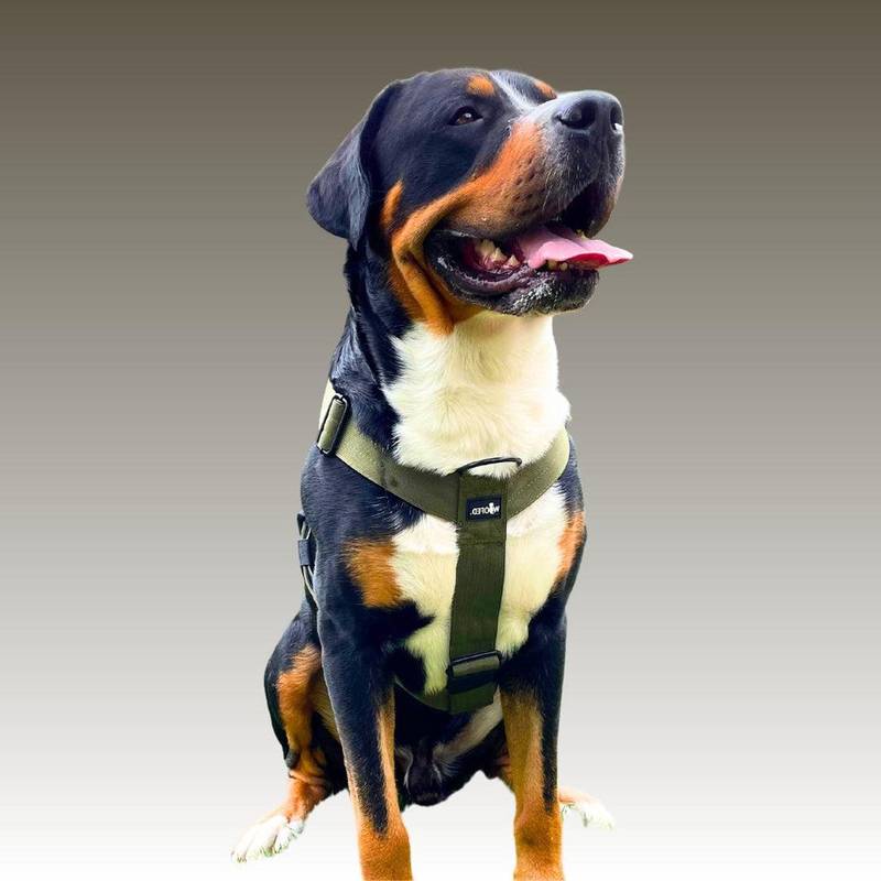 Das bequeme Sicherheitsgeschirr für Deinen Hund in Oliv.