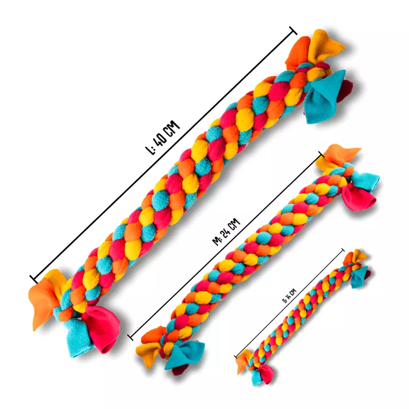 Jedes KNÖTLI ein farbenfrohes Unikat, das sich durch seine hochwertige Qualität und Haltbarkeit auszeichnet. Aus dicht gesetzten, festen Knoten aus 100% dickem Polarfleece ist dieses Zerrspielzeug für Hunde äußerst robust und Öko-Tex-zertifiziert – also sicher für deinen Hund und die Umwelt.